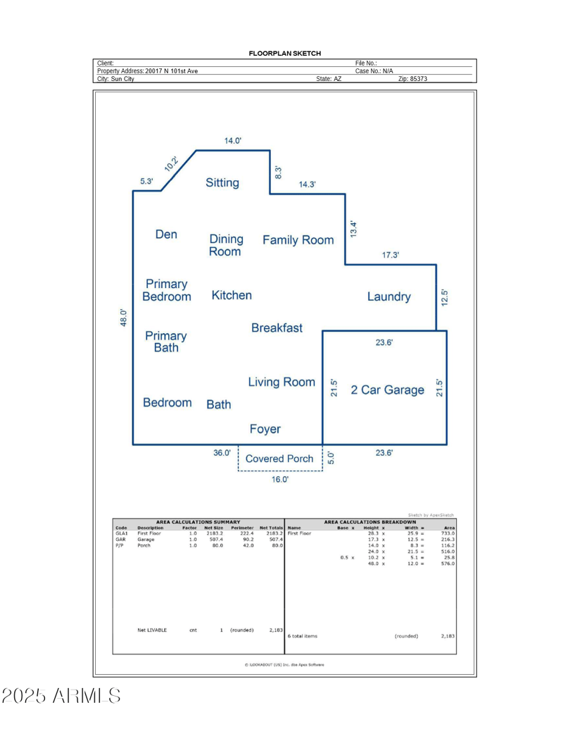 20017 101st Ave, Sun, AZ 85373 and is listed for sale at $289,000.00. This home was built in 1977, contains 2183 square feet of living space, and sits on a 0.24 acre lot. This residential home is priced at $132.39 per square foot.