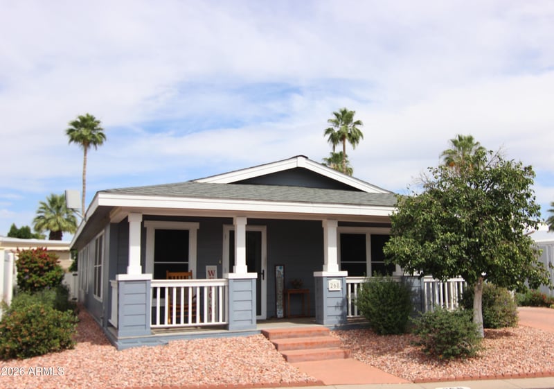 Listing details for 201 Greenfield -- #268, Mesa, AZ 85206 : THIS SPACIOUS MFG HOME WILL WOW YOU FROME THE MOMENT YOU STEP OUT OF YOUR CAR....INVITING FRONT PATIO DECK, OPEN SPACIOUS GREAT ROOM & LARGE KITCHEN DINING AREA, HUGE PRIMARY BEDROOM WITH BONUS DEN & WALK-IN CLOSET, NICE PRIVATE BACK YARD & LARGE AIR CONDITIONED STORAGE BUILDING. ENJOY A WALK TO THE COMMUNITY BLDG & POOL AREA, SAFELY SITUATED IN A GATED 55+ COMMUNITY WITH 2 REC CENTERS AND POOLS, CLOSE TO SHOPPING & BANKING & FULL OF FRIENDLY NEIGHBORS. DONT MISS OUT, PUT THIS ON YOUR MUST SEE LIST....!