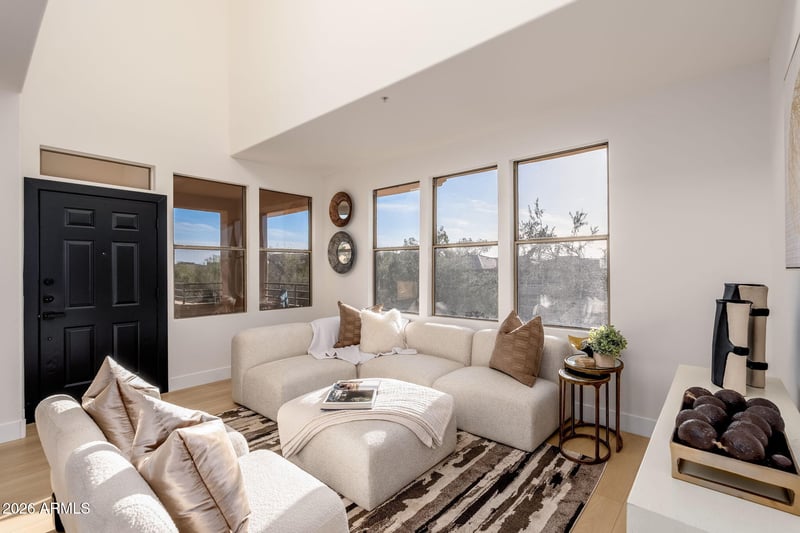 Listing details for 20100 78th Pl #2130, Scottsdale, AZ 85255 : Discover the ultimate Scottsdale lifestyle in this extensively renovated 2-bedroom gem at The Edge at Grayhawk, where modern luxury meets resort-style living! This bright, end-unit home features vaulted ceilings, an open layout, and a flexible upstairs bedroom perfect for guests, home office, or creative space. Rare 1-car garage directly below offers unmatched convenience. Unwind on your private balcony with stunning views & superior privacy. Enjoy new stainless steel appliances, premium flooring, and thoughtful upgrades. Resort amenities: manicured grounds, 4 heated pools, 3 spas, fitness center, private theater, on-site chef, billiards, concierge, and more. Near the 101 & Scottsdale Rd with golf, hiking, dining and shopping at your doorstep. Welcome home to effortless luxury!