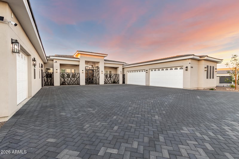 Listing details for 20106 Whitton Ave, Buckeye, AZ 85396 : Wow! If you're searching for a home with all the bells & whistles, look no further. This outstanding masterpiece is truly a dream come true! Starting with a 5-car garage, wide RV gates, a circular driveway, and a detached RV garage, offering incredible flexibility and storage. A Sophisticated open floor plan showcases high, airy ceilings, a wall-mounted fireplace, tile flooring, neutral tone, abundant natural light, and high-end finishes throughout. Gorgeous chef's kitchen is the heart of the home, featuring stainless steel appliances, a walk-in pantry, quartz counters/backsplash, a plethora of cabinetry, and a waterfall island with a breakfast bar. Grand owner's retreat impresses with direct outdoor access, an elegant ensuite complete with a make-up desk, garden tub, and a walk-in close Additional highlights include large family/entertainment room, a versatile den, a bonus room ideal for work or hobbies, and a 2nd main bedroom with its own private bathroom, perfect for guests or multi-generational living. Continue outside to your own private oasis and enjoy breathtaking mountain views from the stunning backyard, complete with a covered patio, gazebo, basketball court, sparkling pool, spa, built-in BBQ, and play area. Live your best life in this exceptional gem! A rare opportunity you won't want to miss!