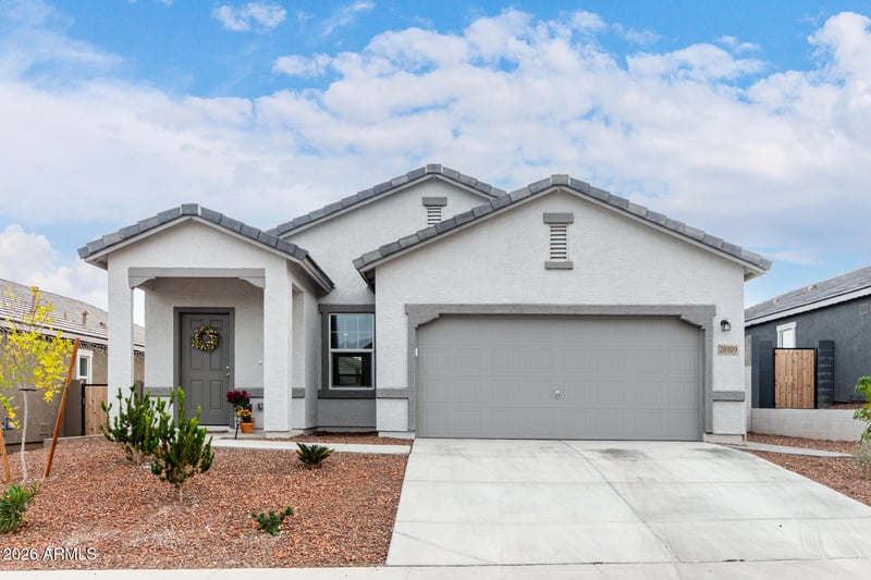 Listing details for 20109 Palo Verde Dr, Litchfield Park, AZ 85340 : Beautiful, move-in ready home built in 2024 offering over 1,400 sq.ft. of thoughtfully designed living space with 3 bedrooms, 2 bathrooms, modern features, and a finished backyard patio complete with charming pergola and travertine tile! Vaulted ceilings enhance this bright, open-concept kitchen, featuring crisp white cabinetry, granite countertops, stainless steel appliances (including refrigerator), and a large island with breakfast bar--perfect for gathering and entertaining. The spacious primary suite includes a private en suite bathroom, while the guest bedrooms provide comfort, privacy and flexibility. Step outside to a private backyard oasis with a covered patio, custom pavers and a relaxing pergola, ideal for enjoying Arizona living year-round. Conveniently located just minutes from Verrado's Main Street District, parks, schools, golf and more with EZ access to Loop 303 and I-10, this home is a must-see!