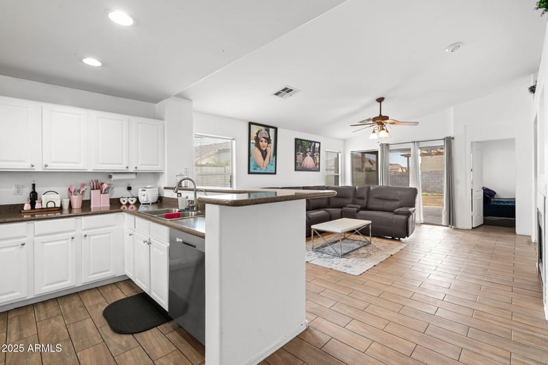 Listing details for 2013 86th Ave, Tolleson, AZ 85353 : Beautiful 4-bedroom home featuring modern wood-look tile flooring throughout and a bright, open-concept layout. The kitchen offers white cabinetry, granite countertops, and stainless steel appliances, ideal for both everyday living and entertaining. An upgraded guest bathroom adds a refined touch, while the spacious primary suite includes an ensuite bath with dual features, a separate tub and shower. The well-sized backyard features a covered patio, perfect for outdoor relaxation and gatherings.