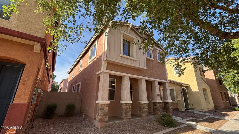 Listing details for 2014 77th Glen, Phoenix, AZ 85035 : Dont miss this two-story home in the Vinsanto Neighborhood! Relax on front porch and enjoy the Spring weather. Through the front door to the open layout with from the Livingroom to the Kitchen. Down stairs half bath for your guests convenience! The great open kitchen with wood cabinets, an Island space great for food prep or dining. Upstairs, the oversized primary bedroom serves as a true retreat with a spacious bathroom including dual sinks, a separate tub /shower, and a walk-in closet. Outside, enjoy a paved side patio for outdoor relaxation and a 2-car rear garage. Enjoy community with a sparkling pool and Playground for the kids. This is a must see!