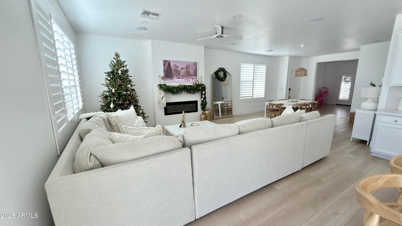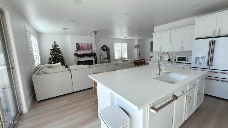 updated cabinets. Lighting, refreshed interior paint, flooring with premium eight mm-thick planks, updated fixtures in all bathrooms, a den/office, and a large