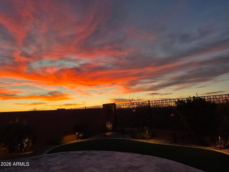 Listing details for 20218 Wagner Wash Dr, Buckeye, AZ 85396 : SPECTACULAR SUNSET/MOUNTAIN VIEWS, THE WHOLE PACKAGE! Meticulously maintained ENDEAVOR plan loaded w/premium upgrades, inside and out. This must see home features a stunning BACKYARD OASIS, 14FT LIGHTED WATER/FIRE FEATURE, fully landscaped, travertine patio and remote solar screen shade.