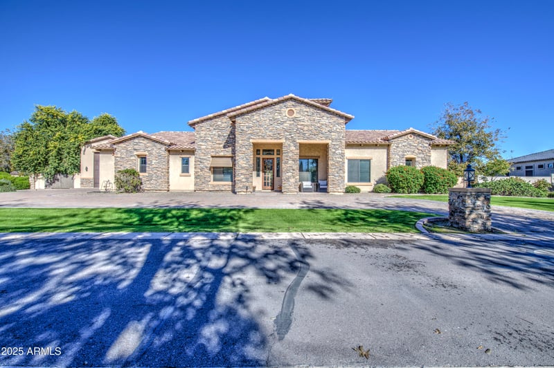Listing details for 20268 Sunset Ct, Queen Creek, AZ 85142 : Positioned on a premier oversized lot within the prestigious, gated community of The Pecans, this single-level estate offers an extraordinary blend of elegance and livability. Dramatic ceilings, expansive open spaces, and floor-to-ceiling glass create a seamless connection to the resort grounds beyond.