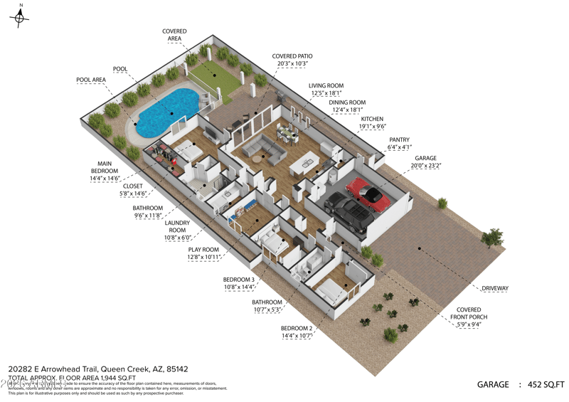 20282 Arrowhead Trl, Queen Creek, AZ 85142 and is listed for sale at $640,000.00. This home was built in 2017, contains 1944 square feet of living space, and sits on a 0.15 acre lot. This residential home is priced at $329.22 per square foot.