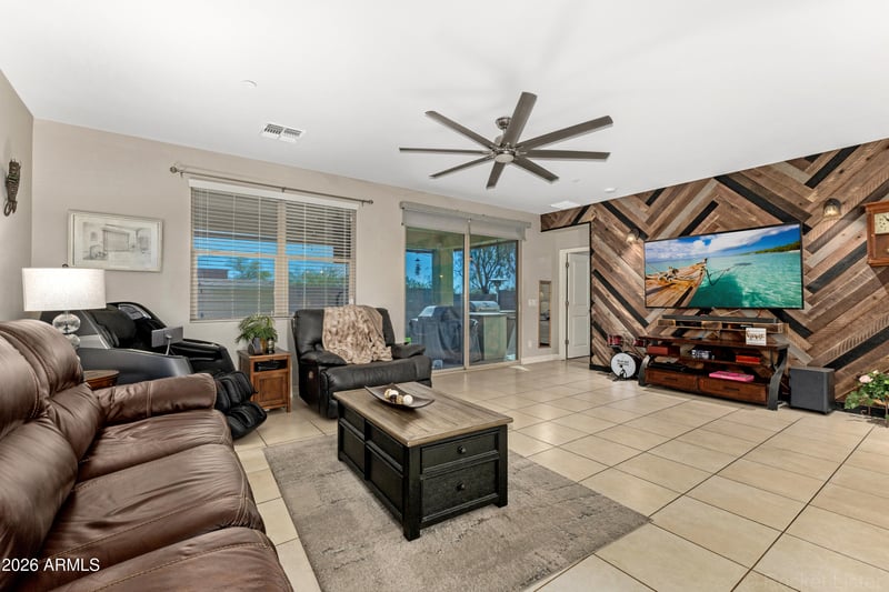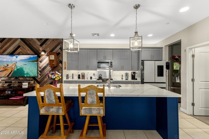 Listing details for 2029 213th Dr, Buckeye, AZ 85396 : Welcome to this beautiful 5-bed, 3.5 bath home offering thoughtfully designed living space, two primary suites, and the added privacy of no homes behind. The open great room is filled with natural light and flows effortlessly into a fully remodeled kitchen featuring quartz countertops, an oversized island, soft close cabinetry, generous storage, and a premium Samsung five burner gas stove that is perfect for both everyday living and memorable gatherings. Upstairs, a spacious loft or game room creates the perfect setting for relaxing or entertaining. The inviting owner's suite offers a peaceful retreat with expansive walk-in closets. Step outside to enjoy evenings under the Arizona sky with a built in BBQ and your own spa, creating unforgettable moments. Step outside to your private backyard retreat with no rear neighbors, featuring a $20K luxury spa hot tub, built-in BBQ with griddle, and low-maintenance turf--perfect for enjoying Arizona evenings.