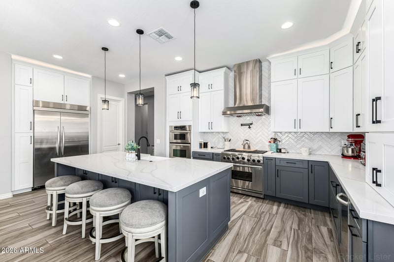 Listing details for 20394 Calle De Flores --, Queen Creek, AZ 85142 : Discover a rare Queen Creek sanctuary where sophistication meets serenity. Behind elegant doors, soaring ceilings frame a seamless blend of luxury and comfort. The chef's kitchen dazzles with a butler's pantry, wine cooler, and flawless flow for entertaining. The primary suite is a true retreat with dual walk-in closets and spa-worthy bath. Unwind in the media room or private den with barn door. Step outside to your own resort--pool with waterfalls, lounge patios, and outdoor fireplace under Arizona skies. Dual laundry rooms and a 3-car garage add effortless convenience. Perfectly positioned near upscale shopping and quick freeway access--this is the Queen Creek address that defines elevated living.
