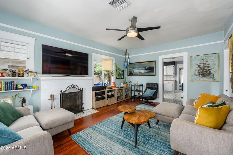 Listing details for 2041 11th St, Phoenix, AZ 85006 : A rare chance to own a truly historically significant Phoenix home in the coveted Coronado Historic District. Rich in character and thoughtfully updated, this 2bd/1ba home blends historic integrity with modern comfort. Inside, original details abound: hardwood floors, casement windows, and a clawfoot tub. Recent upgrades include an updated kitchen & bath, R/O system, dual-zone mini-split, new electrical panel & plumbing, and reinforced foundation. Step outside to a lushly landscaped backyard. Enjoy the covered patio with its misting system in the summer and the outdoor fireplace and spa during the cool winter nights. Located just 1.5mi from Roosevelt Row and only 4.5 mi from Sky Harbor, this home offers charm and convenience in one of central Phoenix's most beloved neighborhoods.