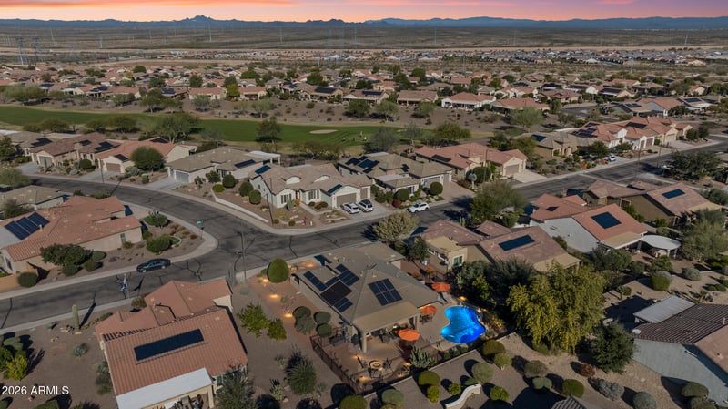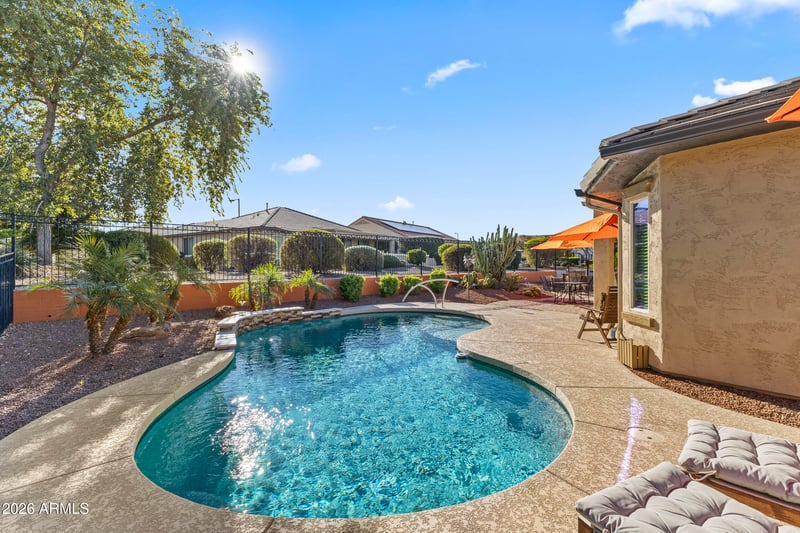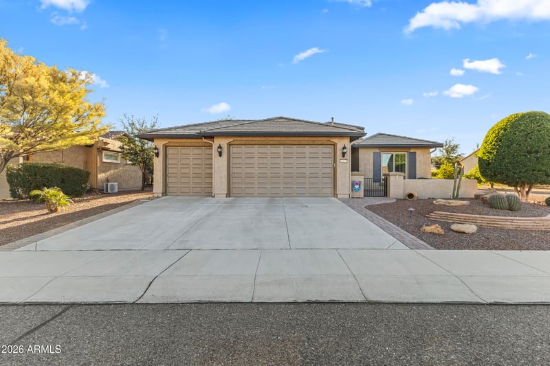 Listing details for 20497 271st Ave, Buckeye, AZ 85396 : Discover this feature-rich Gala model with a RARE 3-CAR GARAGE, thoughtfully designed for comfort and style. This home offers 2 bedrooms, 2 bathrooms, plus a den, along with energy efficient SOLAR & a Gas-Heated POOL. The kitchen shines with Granite countertops, sophisticated Backsplash, Gas Range, Glide-out Shelving, & Reverse Osmosis. The spacious Owner's Suite bathroom includes French Doors for privacy, Dual Vanities, & LARGE Walk-in Closet. Step outside to a true backyard OASIS featuring an Extended Paver Patio, fully Fenced yard & Firepit, perfect for year-round entertaining. The Temperature-Controlled garage boasts Epoxy Floors, Storage Cabinets, Workbench, Utility Sink, Tankless Water Heater, & Water Softener. A must-see home that blends luxury, function, & exceptional upgrades!