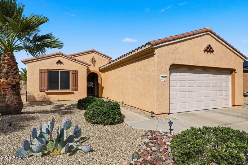 Listing details for 20506 Sojourner Dr, Surprise, AZ 85387 : Beautifully updated home featuring a large quartz island, kitchen with new appliances, new LVP flooring, and designer-tiled showers. Offers 2 spacious bedrooms, 2 renovated bathrooms, and a versatile bonus room. Extended garage includes built-in storage, workbench, and space for two golf carts plus a vehicle. Backyard features attractive pavers and low-maintenance outdoor living. Located in The Grand with access to golf, clubhouses, pickleball, tennis, and numerous community activities.