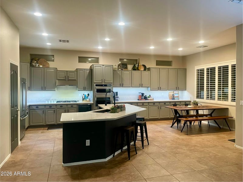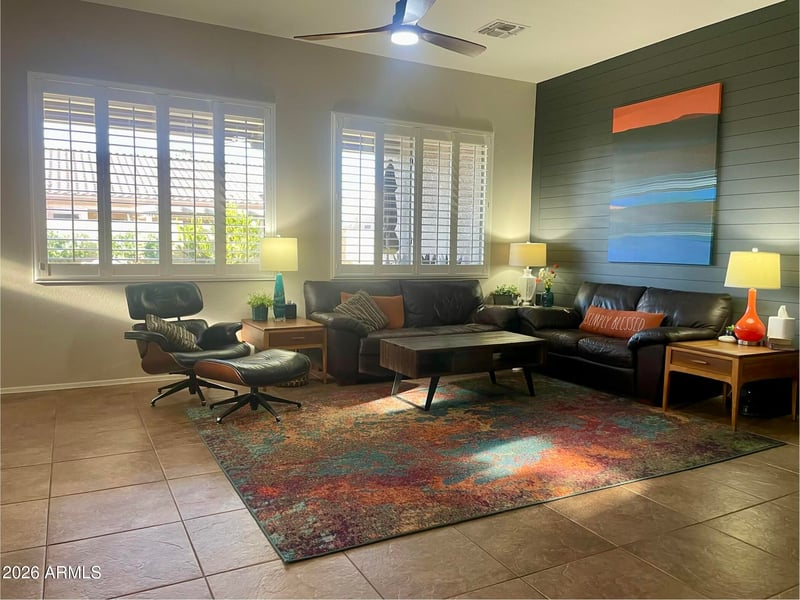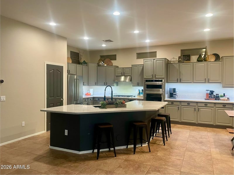 Listing details for 2060 Flintlock Way, Chandler, AZ 85286 : Pro photos coming Friday. This upgraded single-level home sits on a large corner lot and is designed for both comfort and entertaining. A private paver courtyard leads to a newly updated front entry, setting the tone for the home's curb appeal. Inside, the chef's kitchen is a standout, featuring quartz countertops, an extended cabinet layout, wall ovens, a gas cooktop, and newer stainless-steel appliances (Nov 2022). There's also exceptional storage with a standard pantry plus an additional walk-in pantry/storage room with shelving and a secondary fridge/freezer. The open floor plan flows into a spacious living area centered around a large island that overlooks the backyard oasis-complete with a saltwater pool, waterfall, and lush landscaping. The north-facing yard provides consistent... shade, making it ideal for year-round outdoor living and entertaining. The home offers three oversized bedrooms plus a den, with tile and luxury plank flooring throughout and plantation shutters in every room. The backyard enjoys added privacy with only single-level homes visible beyond it. Additional features include a three-car garage with epoxy floors and extra depth of over 24 feet, providing ample space for a full-size truck. The roof underlayment was replaced in 2020 for added peace of mind. Located near the Loop 202 with convenient access to shopping, dining, and approximately half a mile from the Chandler Paseo Trail, this home combines luxury, functionality, and an ideal location.