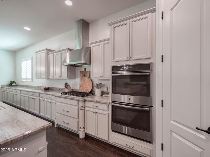 Listing details for 20601 196th St, Queen Creek, AZ 85142 : This beautifully maintained home is MOVE-IN-READY and features a long list of expensive upgrades, including durable wood-plank tile flooring, a chef's kitchen layout w/ extended cabinetry, abundant storage, and gorgeous granite countertops. Laundry room includes additional built-in cabinets for added storage & connects to master closet. The three-car garage is complete w/ cabinets for excellent storage and workspace. Enjoy outdoor living in the low-maintenance backyard with premium turf and travertine patio. The lot backs to common area, offering added privacy and open views. Located near the QC wash trails and easy access to Mansel Carter and Desert Mountain Parks. Just minutes from Queen Creek Marketplace, restaurants, shopping, & all the exciting new development coming soon to the area!