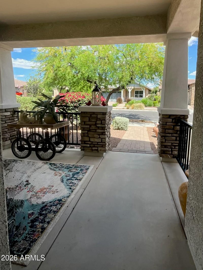 Listing details for 20615 Nelson Pl, Buckeye, AZ 85396 : MUST SEE VERRADO BEAUTY WITH OWNED SOLAR & DESIGNER UPGRADES! TURN-KEY in the highly sought-after Verrado master-planned community! This stunning 3-bedroom + den, 2-bath home sits on a quiet cul-de-sac lot and offers the perfect blend of luxury, efficiency, and lifestyle. Step inside to an open-concept great room featuring 10' ceilings, 8' doors, new flooring, oversized tile, and a 12' triple-panel sliding glass door that creates seamless indoor-outdoor living. The upscale kitchen features granite countertops, premium ThinQ stainless steel appliances, built-in wall ovens, a 5-burner gas cooktop, and a modern touch-free faucet--perfect for both everyday living and entertaining. The spacious primary suite features a beautifully remodeled upscale bathroom with dual executive-height vanities, designer finishes, and a custom tiled walk-in shower. A separate, generously sized flex room offers the perfect space for a home office, den, or craft room. Enjoy Arizona living in the private backyard, complete with new pavers, low-maintenance artificial turf, and new irrigation, along with a view fence and a covered patio with automatic sun shade--perfect for relaxing or hosting. Inside, automatic window shades add comfort and convenience throughout. Additional upgrades include plantation shutters, surround sound prewire, upgraded lighting and ceiling fans, newer washer & dryer, and a garage with built-in storage cabinets and coded access. Smart home features include a Schlage coded front door lock, smart thermostat, and Ring security system for added convenience and peace of mind. Energy efficiency shines with owned solar, Energy Star Level 3 features, 2x6 construction, 14 SEER AC, dual pane low-e windows, and radiant barrier roofing. Located within walking distance to neighborhood parks and tree-lined streets. Verrado offers 75+ parks, 20+ miles of trails, community pools, fitness centers, pickleball courts, and two championship golf courses. Conveniently located near I-10 with easy access to shopping, dining, and everyday amenities. Luxury upgrades. Smart features. Move-in ready. This one delivers.