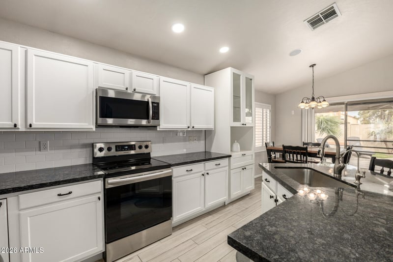 Listing details for 2062 Arabian Dr, Gilbert, AZ 85296 : Beautiful updates shine throughout this Finley Farms home! Enjoy wood-look tile flooring, an open kitchen with stainless appliances, subway tile backsplash, granite counters, R/O system & pantry. The home features a newer HVAC, new water heater & refreshed exterior paint. Relax in the great room with vaulted ceilings, plantation shutters, surround sound & a gas-plumbed fireplace. The main bedroom offers an updated ensuite, outdoor access & walk-in closet. The low-maintenance backyard includes a misting system, pool with newer pump, covered patio with new roof & propane fire pit. With a practical layout, strong updates & easy 202 access, this home is minutes from favorite Downtown Gilbert spots.