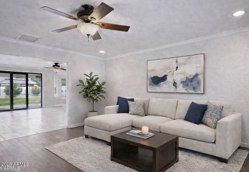 Listing details for 2064 Kenwood Cir, Mesa, AZ 85213 : Classic brick home, corner lot, in Mesa's desirable Citrus Corridor within Orange Blossom Estates. Set on a generous cul-de-sac lot with grassy backyard built for entertaining & along with a generous pool. New custom Arcadia doors (2025) open to an extended covered patio with paver hardscape--perfect for relaxing or entertaining. Wood-look luxury vinyl plank flooring in the spacious primary bedroom and family room, plus plantation shutters throughout (2021). The hall bathroom has been beautifully remodeled (2021) Interior highlights include a stone wood-burning fireplace, pocket doors in the family room, and a large walk-in pantry. Interior and exterior painted in (2022). A welcoming home ready for your personal touches. See upgrade list for additional features! NO HOA !! Welcome Home!!