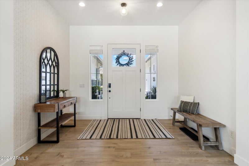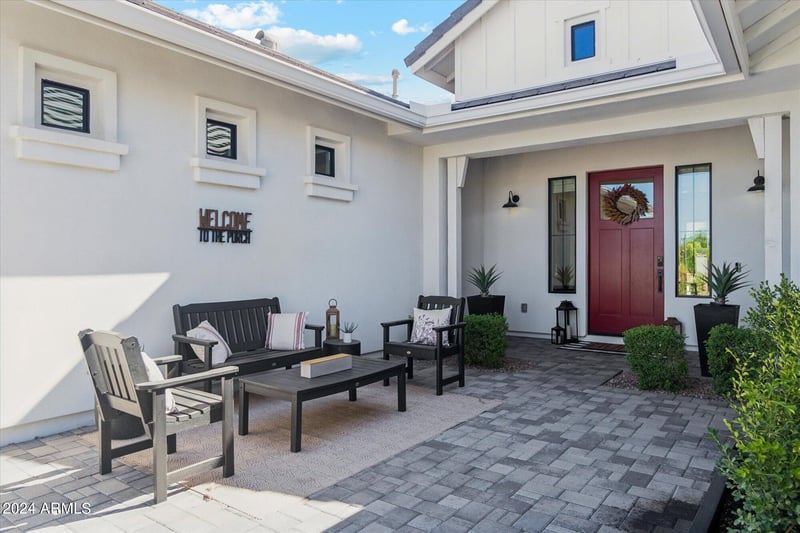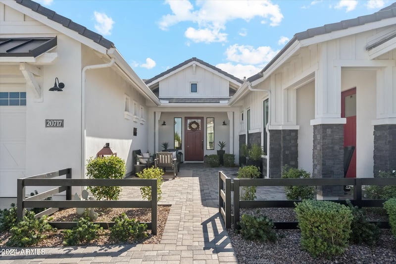 Listing details for 20717 Pummelos Rd, Queen Creek, AZ 85142 : Welcome to Bridle Ranch, a gated enclave delivering refined luxury. This exceptional 2021-built Modern Farmhouse home with nearly 4000 sq ft of thoughtfully curated living space, showcasing a desirable split floor plan and an expansive open great room with pocket sliding glass doors, perfectly connecting indoor and outdoor entertaining. The chef's kitchen features a large island, 6-burner gas cooktop, double ovens, 2 dishwashers, and a generous walk-in pantry. Offering 5 bedrooms and 4 baths, plus an attached casita with private entrance, ideal for guests or multi-gen living. Tucked into a quiet, private back CORNER LOT nearing 1/2 acre, enjoy a secluded sport court, 6-hole MINI GOLF course, and a cabana w/ built-in BBQ. Steps from Pecan Lake, San Tan Mountains, dining, and entertainment.