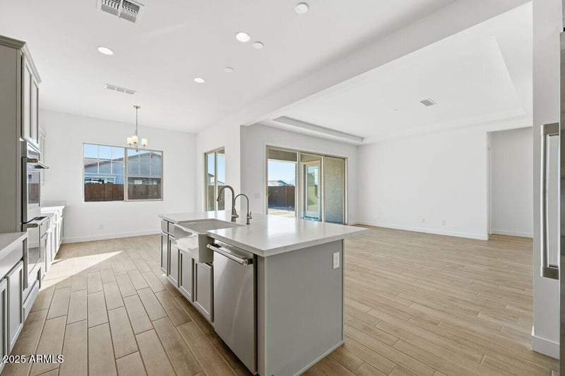 Listing details for 20721 Via Del Oro --, Queen Creek, AZ 85142 : What's Special: 1st Floor Primary Bedroom | Close to Greenbelt | North Facing Lot | Close to Amenity | Gourmet Kitchen. New Construction - Ready Now! Built by America's Most Trusted Homebuilder. Welcome to the Rockford at 20721 E Via Del Oro in Ellsworth Ranch. This stunning two-story home offers 3,325 sq. ft. with 4 bedrooms, 2.5 baths, and a 3-car tandem garage. Enjoy an open kitchen, dining, and great room, plus a private study, loft, and game room. The downstairs primary suite features dual vanities, tub, shower, and walk-in closet, while upstairs offers flexible spaces for work or play. Additional Highlights include: gourmet kitchen, exterior door at primary suite, multi side glass door at gathering room and 42'' upper kitchen cabinets. MLS# 6950603