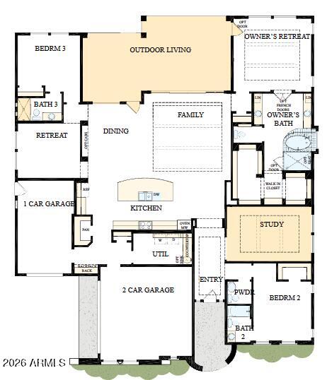 Listing details for 20813 Montebello Ave, Buckeye, AZ 85396 : BRAND NEW 3336SF single level with 3 ensuite beds, an enclosed study, retreat, extensive backyard covered living area and split 3 car garage on 10,551SF homesite in 55+ Victory; open plan with huge energy efficient windows and 16' sliding glass door opening to extended covered patio; 10' ceilings and 8' doors; gourmet kitchen with GE Monogram appliances including 42'' Built-in refrigerator and gas rangetop; large quartz island and gorgeous dark cabinets with custom tiled backsplash; quartz c-tops in all baths; upgraded tile, carpet and pad in all areas; 2-tone paint throughout; upper and lower cabs with sink in utility room; 2x6 construction and extensive new home warranty.
