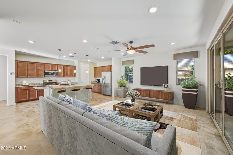Listing details for 20821 40th Ln, Glendale, AZ 85308 : Designed for effortless living - this elegant 3 bed, 2.5 bath home offers a refined blend of comfort, function and flexibility. Tile flooring throughout-no carpet-creates a clean low maintenance environment ideal for full time or seasonal living. The open-concept and split floor plan provide both privacy and flow, 2 guest beds provide functionality and flexible living spaces for all your needs. The kitchen is thoroughly appointed w/a new granite island countertop and a new reverse osmosis system, perfect for entertaining or everyday living and the pantry is an added bonus with plenty of storage options. A standout feature is the private fitness/sauna room with its own mini split a/c system. Additional upgrades include an epoxy finished garage floor, Ring doorbell system, and Lorex security camera system with 6 cameras surrounding the exterior perimeter.