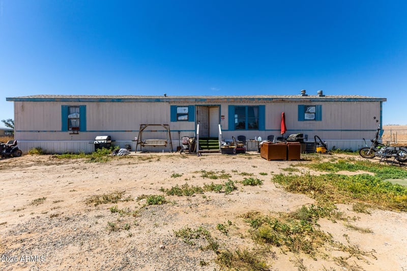 Listing details for 20917 Black Butte Rd, Wittmann, AZ 85361 : Two manufactured homes on a 1.09-acre fenced lot with no HOA, offering flexible living or rental potential. Combined 5 bedrooms and 4 bathrooms across both residences. Property includes space for RV parking, trailers, and equipment with open land for additional use. Horse privileges and animals allowed. Utilities include APS power, city water, and septic system. Roofs replaced within the past 3 years. Desert and mountain views with a private setting. Located near US-60/Grand Ave for access to Wittmann, Morristown, and the Surprise retail corridor with shopping, dining, and services.