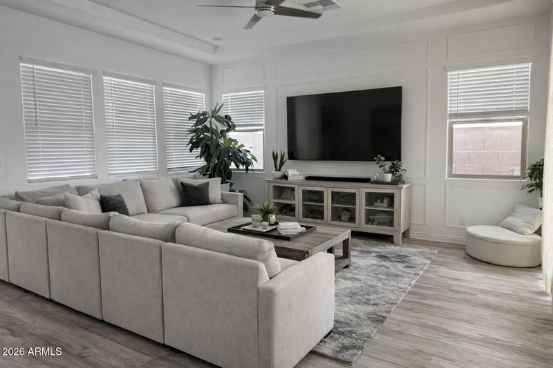 This beautifully upgraded single-story home in Queen Creek sits on a premium lot with no home behind and rare direct walkway access to the nearby shopping complex, a feature unique to this location. Walk to everyday conveniences including Dutch Bros Coffee, ALDI, Costco and Trader Joes, Nordstrom Rack, Target and Harkins Theater.