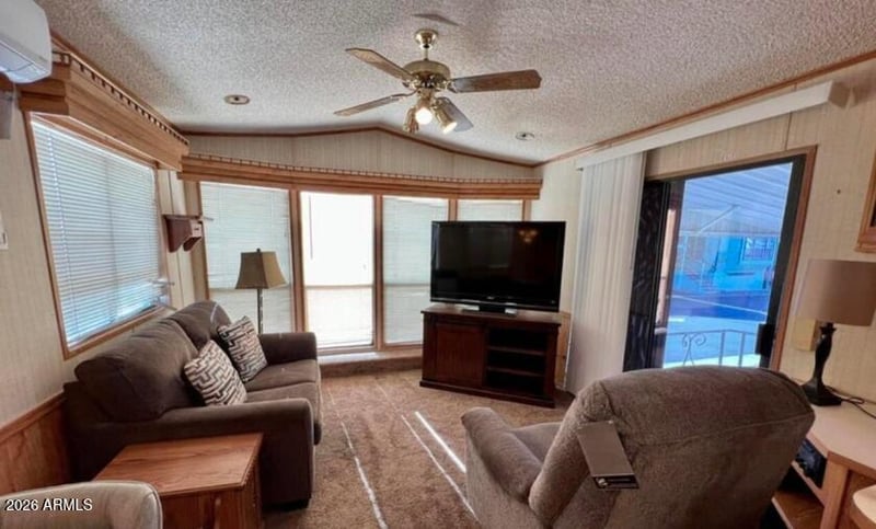 Listing details for 210 Mesa Dr, Florence, AZ 85132 : Caliente Casa De Sol, an amenity-filled 55+ community where you OWN YOUR OWN LAND! This fully furnished, and well maintained 1 bedroom, 1 bathroom park model with covered parking is ready and waiting for YOU to come join in on the fun! Heating and cooling system recently updated with remote controlled units in living room & bedroom. Lots of storage inside plus exterior storage shed. Community features a spacious clubhouse complete with a ballroom, kitchen, fitness center, wood working, billiards, and ceramics room, to the multiple swimming pools and hot tubs, shuffleboard, pickle ball, mini golf, horseshoes, dog runs, and SO much more, you'll be so excited to call this place home!