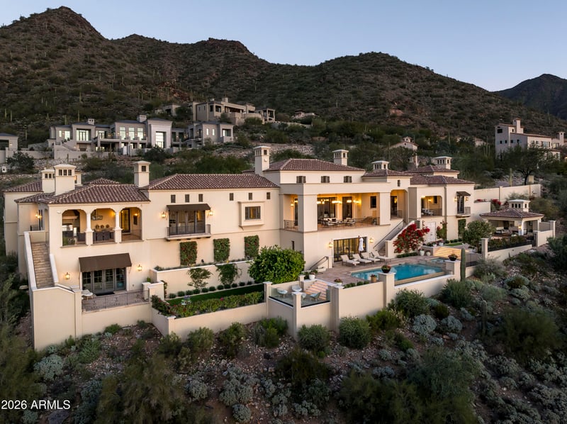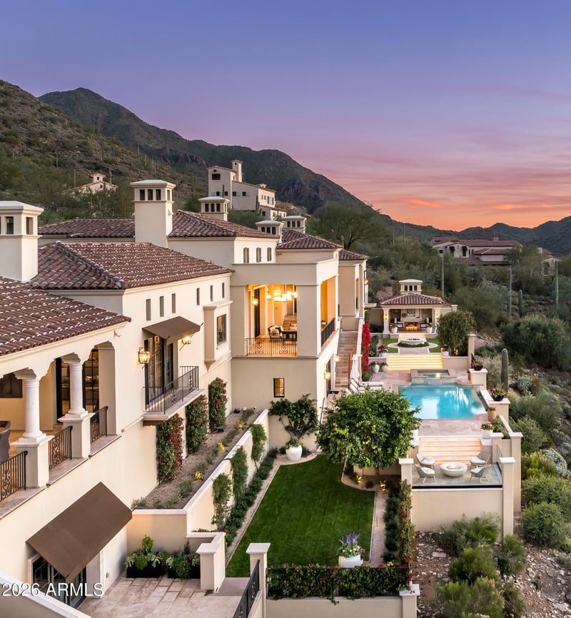 Listing details for 21036 112th St, Scottsdale, AZ 85255 : Renowned for its exceptional architecture, breathtaking views, and unparalleled lifestyle, the prestigious Silverleaf community sets a standard of excellence—one this remarkable residence fully embodies. The home commands one of the most extraordinary, completely unobstructed views in Silverleaf, delivering dramatic vistas along the expanse of the home. Approached by a graceful, tree-lined drive, the 8,303-square-foot Salcito Custom Home is framed by lush, mature, and colorful landscaping that perfectly complements its exquisite architectural design. Upon entry, the eye is immediately drawn to the expansive views and abundant natural light, creating a striking sense of arrival. Thoughtfully designed for both comfort and functionality, the main level hosts the primary living spaces, including the living and dining rooms, family room and kitchen, office, theater, master sitting room, and three bedrooms. The lower level is reserved for a spacious guest suite and a versatile pool cabana. Pool cabana can also be a 5th ensuite bedroom. Throughout the home, sophisticated finishes reflect a timeless, classic elegance equally suited for refined entertaining or relaxed everyday living. Outdoor living spaces are beautifully enhanced by curated landscaping and multiple intimate venues, ideal for enjoying vivid sunsets, brilliant city lights, and the tranquility of surrounding mountains. This exceptional estate offers the ultimate in luxury, and resort-style living, evident in the photos and video, truly your own private sanctuary.