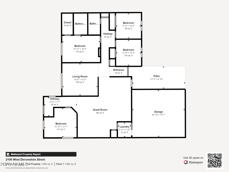 Listing details for 2106 Devonshire St, Mesa, AZ 85201 : The one you've been waiting for! Great layout and recently updated with new flooring, kitchen countertops, fresh interior/exterior paint, a fireplace insert, bathroom vanity, and more. Large primary bedroom with private bathroom and walk-in closet paired with two additional bedrooms and full bathroom. Fourth bedroom doubles as a hobby room, office or potential in-law suite. Your private backyard is your new summer oasis with a relaxing 10ft cocktail pool, 12x12 pergola, and 6x8 floating sun deck. Prime shaded garden area ready to host summer veggies and winter greens. Low maintenance front yard landscaped with native plants, lava rock and river rock. New water heater (2026), A/C (2022), mini-split (2022) appliances (2022), and rolled roof (2022). Wide side gate for toy and boat storage. Move in ready and rental friendly. CLOSE TO EVERYTHING! Mesa Riverview, Chicago Cubs spring training at Sloan Park, Tempe Marketplace, ASU, 101 & 202 freeway access. Explore Riverview Park or take the pedestrian river path connecting to Tempe Beach and the future site of South Pier and the Arizona Amazing Ferris Wheel. 10 mins to downtown Mesa or Tempe, 15 mins to downtown Scottsdale, 20 mins to downtown Phoenix. Check out the virtual tour. Agent/Owner