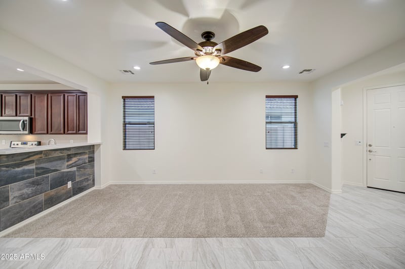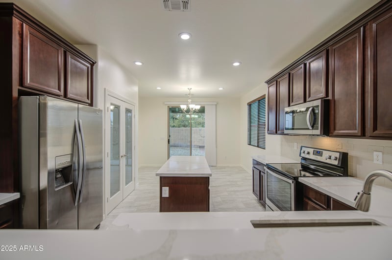 Listing details for 2109 99th Ln, Tolleson, AZ 85353 : TURN KEY FULLY REMODELED HOME!! Extended driveway with pavers, nice front patio, & newer exterior paint. As you open door you will be in awe with all the upgrades, starting with 8' entry doors, 12x24 tile throughout home, only small area of fresh new carpet in LR. New: doorbell, lighting fixtures, trim, paint, brush nickel fixtures, LED can lighting, & quartz. Living room has slate stone accent wall, LED can lighting, & open to the amazing kitchen with new farmers S.S. sink and appliances, beautiful quartz counter tops, tile backsplash, island, 42'' cherrywood maple cabinets with crown molding, new garbage disposal, custom pantry glass doors, & eat in kitchen nook/dinning wired for TV and satellite. Restrooms have been amazingly remodeled with with 6x12 floor to ceiling tile, bench, corner niche, dual shower heads, & glass doors. New: toilet, mirror, lighting fixtures, brush nickel waterfall faucet, stone back wall and a small closet for towels. Master bedroom and closet are a good size, pre wired for surround sound, amazing remodeled restroom, new: quartz counter tops, double sinks with brush nickel waterfall faucets, lighting fixtures, and toilet. Custom shower features floor to ceiling tile, bench, oversize niche , waterfall shower head, and glass doors. This home has smart panel for the smart home wiring, along with wiring for audio throughout to entertainment hub in living room. Backyard has new turf and pavers making easy to maintain. It also has an area with pavers and electrical for a spa tub. Newer TRANE unit just fully serviced and polarized dual pane windows. Garage has an exit door, newer water heater, cabinets, ceiling storage racks, pre plumbed for soft water, and is wired for TV and satellite. Come and be wowed by all the upgrades!