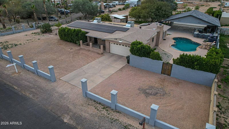 Listing details for 2110 202nd Ave, Buckeye, AZ 85396 : A Desert Mirage Made Real: Your Once-in-a-Lifetime SanctuaryHidden away from the noise, where the Arizona sky stretches wider than anywhere else, lies a secret desert gem that most buyers will never even know exists. This isn't just a property; it is a rare alignment of luxury, land, and limitless potential. Opportunities of this magnitude are usually passed down through families—rarely do they hit the open market.If you've been waiting for ''the one,'' this is your moment. But fair warning: a sanctuary this complete, on a lot this size, won't wait for anyone.The Ultimate Canvas: 2.15 Acres of OpportunityWhile others settle for cramped subdivisions, you'll be commanding a massive 2.15-acre estate. Because this is zoned R-43 (requiring 1 acre per dwelling), you don't just have a home— you have a legal goldmine.The Second Home: A separate, second residence is already under construction in the back. The heavy lifting is started; you just get to finish the vision.The Bonus Spaces: A dedicated Office/Man Cave with full electricity offers the ultimate "work from home" or hobbyist retreat.Freedom to Roam: With a rear exit designed for horse riding, you can disappear into the velvet Arizona evenings right from your backyard.Desert Delight: An Entertainer's DreamImagine hosting for 100+ guests under a canopy of natural shade and fruit trees. This home was redesigned for the person who loves to celebrate life.The Oasis: Dive into a crystal-clear, newly redone poolyour private reprieve from the desert heat.Event-Ready Grounds: Perfectly placed concrete pads, professionally graded and filled land, and expansive entertainment zones make this the premier spot for weddings, family reunions, or exclusive desert parties.Atmosphere: Breathe in the scent of citrus and enjoy the cool breeze under the skylights and new ceiling fans.Uncompromising Luxury: Fully Remodeled & Move-In ReadyEvery inch of this residence has been stripped back and reborn with sophisticated finishes and modern "bones." You get the charm of a desert estate with the peace of mind of new construction. Feature The UpgradeClimate ControlBrand new AC system and all-new ductwork for icy-cool summers.PlumbingEntirely new ABS main line and interior plumbingzero worries.FlooringGorgeous, high-end flooring throughout the entire home.LightingSleek new recessed lighting and bright, airy skylights. NO HOA, Energy efficient Solar Panels, You are going to want to see this home today. Minutes away from Costco, my favorite restaurant First watch, Verrado High School 8 min away, Frys Marketplace 8 min, New Home depot right next to Costco. 14 Minutes from the Victory Steps Verrado Hiking, Less than 15 Minutes from Verrado Golfing, This is the One!