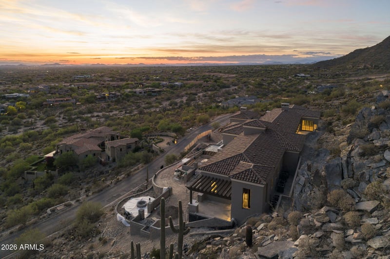 Listing details for 21137 102nd St, Scottsdale, AZ 85255 : Now just six weeks from completion and ready to view, this remarkable Silverleaf estate is revealing its full beauty. The lights are on, and the warmth of the home is beginning to shine through. Set on a five-acre hillside lot within North Scottsdale's most prestigious community, the residence blends architectural excellence, refined interiors, and breathtaking natural surroundings. Created by the celebrated Silverleaf team of architect Scott Carson, builder Nicholas Development Group, and interior designer Kristin Hazen. The French Mediterranean-inspired estate spans 11,619 square feet. Its light, feminine design includes five en-suite bedrooms, three half baths, and two laundry rooms. Expansive balconies on main and upper levels frame sweeping mountain views and glowing Arizona sunsets. The upper patio and trellised garden offer shaded north facing tranquility, hugging the mountain, and ideal for a rose garden or secure outdoor space for pets. Thoughtfully designed for both business and leisure, the home includes offices on the main and upper levels, providing elegant spaces for productivity and privacy. The lower level features a wine-tasting room, movie theater, and game room--perfect for entertaining guests or enjoying quiet evenings at home. A private drive leads to an impressive garage accommodating eight to sixteen vehicles--or a mix of cars and an indoor pickleball court, the driveway continues to the front door with guest parking for three further vehicles. The main and upper-level guest wing offers four split en-suite bedrooms, as well as a private entrance, entertainment lounge, a reading room, and gym, private upper balcony, and a fire pit terrace with 180-degree valley views. Outdoors, the resort-style pool includes a hot tub, baja shelf, and expansive entertainment patio--perfect for alfresco dining and taking in the beauty of the Sonoran landscape. Arrive at sunset to truly appreciate its beauty and unique setting.