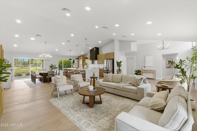 Listing details for 21214 124th Ave, Sun City West, AZ 85375 : EXQUISITE Golf Course Living with breathtaking views and a fully updated interior. This beautifully redesigned home features a bright, open layout, recessed lighting, and wide-plank luxury vinyl flooring throughout. The gourmet kitchen offers quartz countertops, natural oak cabinetry, stainless steel appliances, and a large island--perfect for entertaining. Enjoy two spacious primary suites, each with spa-inspired bathrooms, oversized rain showers, and custom closets. Relax on the expansive covered patio overlooking the golf course and enjoy stunning Arizona sunsets. Includes a paid solar lease, offering energy efficiency and long-term savings. Resort-style living at its finest.