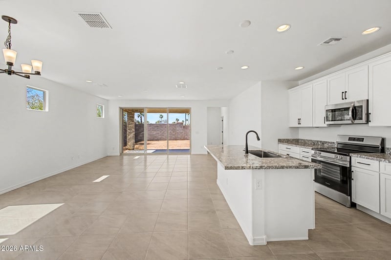 Listing details for 2122 242nd Ln, Buckeye, AZ 85326 : MOVE IN READY!! The only NEW home available on CORNER HOMESITE adding privacy and curb appeal. The open concept layout is enhanced by our MULTISLIDE GLASS DOOR. Kitchen features 42'' WHITE CABINETS, CLASSIC BLACK & WHITE GRANITE and deep single bowl sink. Tile & Carpet in all the right places. Fabulous features such as MODERN BLACK ACCESSORIES, KITCHEN TRASH PULL OUT and more! MOVE IN FOR $500!!! Final Opportunities await at this popular community!
