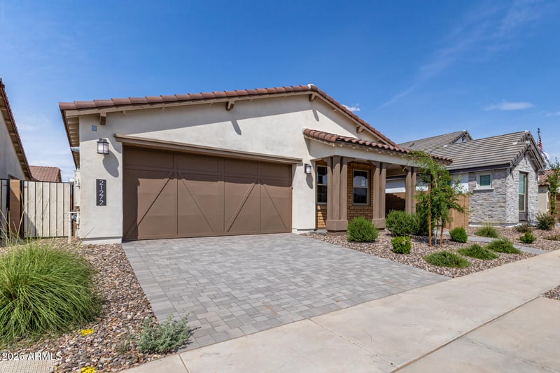 Listing details for 21272 Timberline Rd, Queen Creek, AZ 85142 : Welcome to this beautifully designed single-story home offering 4 bedrooms, 3 bathrooms, and 2,183 square feet of thoughtfully crafted living space, located in the desirable Ascent at Jorde Farms neighborhood. A charming covered front porch welcomes you into a bright and open layout ideal for modern living. The kitchen is a standout feature, showcasing stainless steel appliances including a gas cooktop, bright white modern cabinetry, under-cabinet lighting, a large walk-in pantry, and an expansive Quartz island with plenty of seating--perfect for entertaining or everyday gatherings. The primary suite offers a private retreat with an ensuite bathroom featuring a large glass and tile shower with built-in seat, a multi-head shower including a rain shower, a dual-sink vanity, and a spacious... walk-in closet. Step outside to enjoy the covered patio overlooking a flat backyard, providing a blank canvas to create the outdoor space of your dreams. This home combines modern finishes, functional design, and a fantastic location for comfortable everyday living.