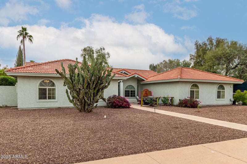 Listing details for 2129 Jensen St, Mesa, AZ 85213 : You'll love this 4 bed, 2bath and office PLUS bonus room home in this desirable Mesa neighborhood. The property boasts a sparkling backyard pool, grass area, shed, appx 20-ft wide RV gate and 40-foot concrete pad - perfect for your RV or other toys. Interior features newer luxury laminate flooring, energy-efficient windows, fresh paint and other upgrades. Upon arrival you'll be greeted by a front courtyard and fountain. Once inside you'll love the large family room with vaulted ceilings, fireplace feature wall with built-in bookcases, plenty of natural light and French doors that welcome you to explore the backyard. The kitchen is updated with quartz counters, 42'' shaker-style cabinets, stainless appliances and loads of counter space and is open to the dining area and bonus room. The bonus room features French doors and vaulted ceilings and is great space to customize for your lifestyle. The primary bedroom is a true retreat with vaulted ceilings, French doors and an ensuite bath complete with a custom walk-in shower with rain head and body spray jets, dual vanity with quartz countertop and walk in closet. The other three bedrooms are all nicely-sized and share an updated guest bath with dual sinks and quartz counter. Off the foyer is another room - perfect for office, second family room or hobby room. The backyard features a large covered patio - a perfect place to relax after enjoying the diving pool with pebble sheen surface. There is additional entertaining space under the outdoor ramada. Eight-person sauna available via extra bill of sale. Two-car garage has 18-ft wide door. All this plus newer exterior paint, light fixtures, whole home water softener and filtration system, newer faucets and ceilings fans add to this home's upgrades. View today before it's gone!
