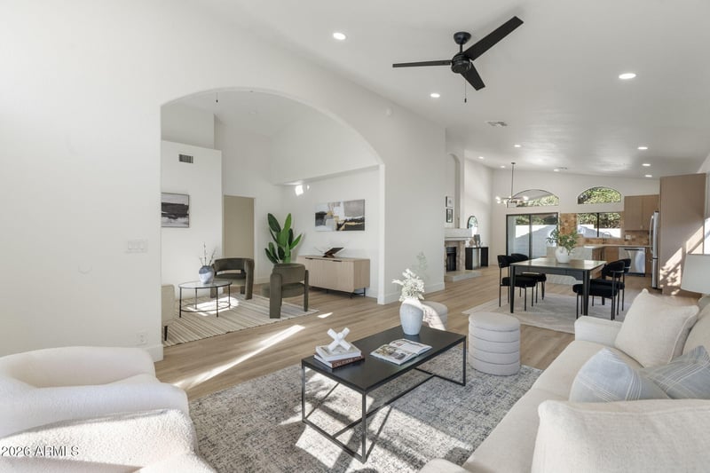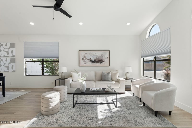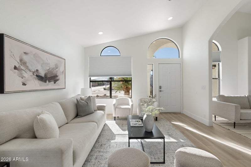 Listing details for 2144 Escuda Rd, Phoenix, AZ 85024 : Beautifully updated with IMPECCABLE attention to detail, this 3 bed, 2 bath home includes a versatile bonus space ideal for a den or home office. Designed for low maintenance luxury living, clean curb appeal with fresh exterior and interior paint, vaulted ceilings, and abundant natural light throughout. The open floor plan is enhanced by high quality LVP flooring and a brand new designer kitchen featuring premium cabinetry, Taj Mahal countertops, and a striking waterfall edge island with bar seating. Stainless steel appliances and modern finishes complete the sleek, contemporary aesthetic. Step outside to a BRAND NEW pool with Pebble Tec finish, complete with a bubbler and in-ground fountain feature. Roof replaced in 2025, new turf/travertine also recently installed. This is a 10/10!! decking, a covered patio, and turf. The primary suite offers a spa-like retreat with a large walk-in shower, dual vanities, and a walk-in closet. Ideally located in Phoenix near the Loop 101, this home provides convenient access to shopping, dining, and everyday amenities. Luxury, modern design, and move-in ready...this home has it all!