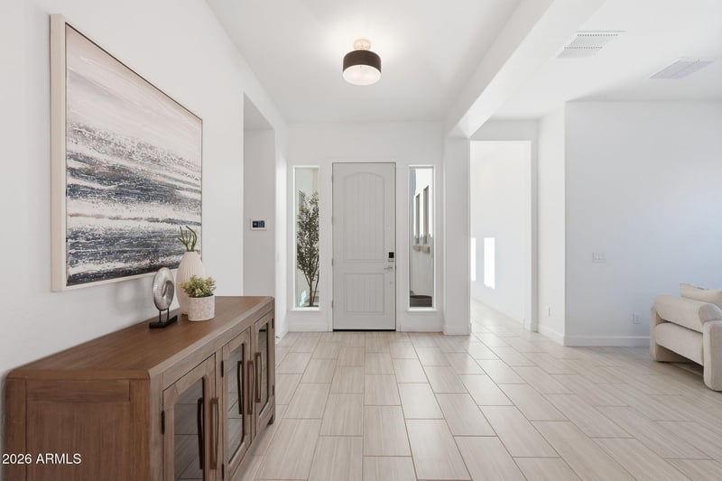 Listing details for 21449 Mariposa St, Buckeye, AZ 85396 : Impeccably designed 2024 home located in a gated David Weekley enclave in Verrado with over $200,000 invested in a custom resort-style backyard. This elevated 4-bedroom plus office/flex space, 3.5-bath residence blends luxury and functionality with tile flooring throughout and an open layout built for entertaining. The chef's kitchen showcases a waterfall quartz island, upgraded cabinetry, GE Monogram stainless steel appliances, generous pantry, and abundant storage, flowing seamlessly into the great room and out to your private outdoor retreat. Enjoy Arizona sunsets by your firepit, with views of the mountains. Heated pool and spa, extended covered patio, pavers, built-in BBQ, make entertaining a breeze! 4-car tandem garage. Close to golf, trails, parks, dog park, shopping, and dining!