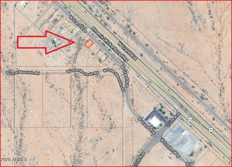 Listing details for 214XX Grand Ave #-, Wittmann, AZ 85361 : PRIME COMMERCIAL LOT OFF GRAND AVE! Incredible development opportunity with unbeatable highway frontage and high traffic counts. This strategically positioned lot features seamless ingress/egress turn lane access from both directions of Grand Ave. Zoned commercial, the site boasts paved road easements and all utilities available right at the property line. Benefit from immediate cross-traffic synergy with neighboring anchors including Family Dollar, Shell, and Subway. With fire hydrants installed and infrastructure already in place, this site minimizes development time. An ideal location for retail, drive-thru, or service businesses looking to capitalize on massive commuter visibility. A truly exceptional opportunity ready for your next venture!