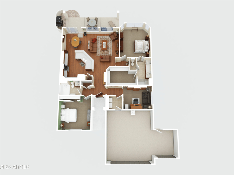 Listing details for 21548 262nd Ln, Buckeye, AZ 85396 : FURNISHED GOLF COURSE GALA + 23 YEARS OF PRE-PAID SOLAR! This exceptional home sits on an oversized lot overlooking the 7th-hole tee box and lake. Enjoy upgraded wood floors in the main living areas & Plantation Shutters throughout. The kitchen features light granite counters & backsplash, upgraded cabinetry, pull-out shelves, &RO system. The owner's suite offers a bay window, crown molding, dual sinks, walk-in shower with seat, private commode, & a spacious walk-in closet. Guest bedroom with adjacent full bath plus a separate office. The 2.5 garage has epoxy floors, cabinets, workbench, sink, tankless water heater, & water softener. Relax on the extended patio with open golf and lake views. Recent updates: HVAC 2022, exterior paint 2025, dishwasher 2025. Solar provides for low APS bills!