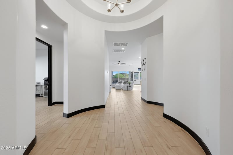Listing details for 21589 Pierson St, Buckeye, AZ 85396 : Welcome to your dream home in the highly sought-after gated Highlands District of Verrado, ideally situated one of the largest lots in the Highlands area! With over $270K in total upgrades and updates, this home is better new!! This exceptional 4-bedroom, 3.5 bath residence combines thoughtful design, high-end finishes, and seamless indoor-outdoor living, crafted for both everyday comfort and unforgettable entertaining. From the moment you walk through the door, you're welcomed by custom two-tone paint and soaring ceilings that create a bright, open, and inviting atmosphere. The heart of the home is a stunning gourmet kitchen designed to impress. Expansive quartz countertops provide generous prep and serving space, beautifully complemented by extended cabinetry with decorative glass for both elegance and abundant storage. A full suite of stainless steel appliances, double ovens, and a gas stove make cooking effortless, while the built-in wine fridge and serving area adds the perfect touch for entertaining. Modern pendant lighting enhances the space with designer flair, and the open-concept layout flows seamlessly into the dining and living areas. The dramatic corner sliding glass door is a true showstopper--opening wide to blend indoor and outdoor living and fill the home with natural light. The sunroom creates the perfect setting for entertaining, seamlessly expanding the home's open-concept design. The integrated IDesign network system enhances your lifestyle with surround sound in the study, dining room, living room, and patio. The receiver and center-mounted speaker at the living room TV convey, offering a complete entertainment experience ready to enjoy. Step outside to your expansive backyard retreat where breathtaking mountain views and Arizona sunsets become part of your everyday living. As the largest lot in the Highlands area, the yard offers exceptional space and privacy. Enjoy an extended paver patio, a putting green area, synthetic grass, gravel accents, and thoughtfully placed plants and trees for a clean, low-maintenance design. Pavers are already installed and ready for a future spa setup, allowing you to create your own outdoor oasis. Additional upgrades continue throughout the home, including ceiling fans throughout and remote-controlled blinds for added comfort and convenience. Bathrooms feature custom framed mirrors, and the laundry room includes built-in cabinetry and designer lighting for both style and function. The 3-car tandem garage is equally impressive with epoxy flooring, a side entry door, soft water system. Washer, dryer, and refrigerator all convey, making this home truly move-in ready. Located in the vibrant Verrado community, residents enjoy tree-lined streets, parks, miles of hiking and biking trails, championship golf, a lively Main Street district, A+ schools, and a strong sense of community. This is more than a home--it's a lifestyle defined by space, views, and elevated living.