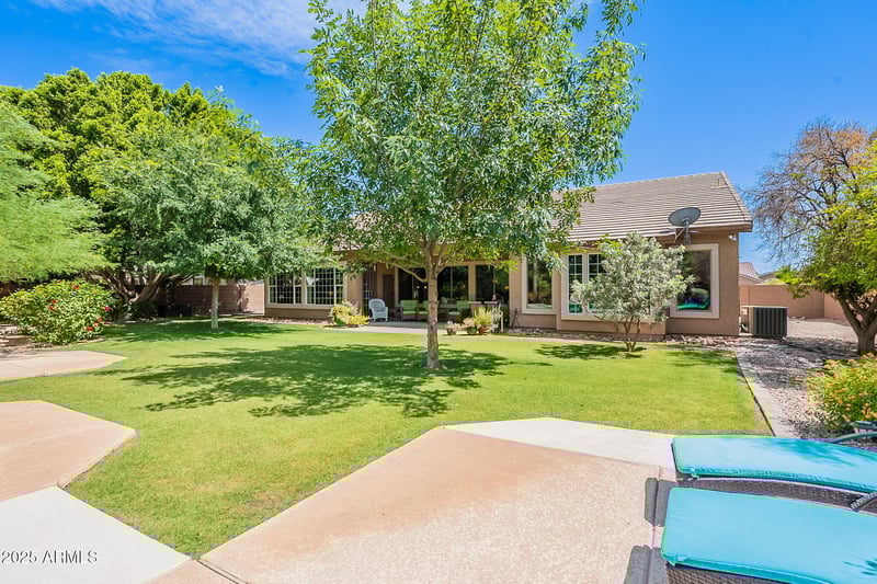 Listing details for 2160 Kenwood St, Mesa, AZ 85213 : *This beautiful southern exposure home will satisfy your longing for peace and privacy. Seller gives $5000 concessions. * Easy access to Hwy 202, just 20 minutes to Sky Harbor *Surrounded by more than a half acre of tropical paradise *Backyard oasis with pool and lounging area *10 ft ceilings in all rooms *Oversized 3 car garage with built in storage *Gorgeous salt water pool with fountain *Private front yard patio perfect for morning coffee Begin a unique and exquisite living experience with your first step into this beautiful 4 bedroom home set on more than a 1⁄2 acre. Wall to wall windows reveal a paradise setting - Inviting friends and family to relax on the covered patio, or stroll leisurely through this tropical paradise. Meticulously maintained, this home features an open and flowing design showcasing beautiful travertine stone floor throughout all living areas. The Large and open kitchen features care free Corian counters, custom 42 inch cherry cabinets with 4" crown molding, backlit display cases with glass doors, beautiful cabinet integrated refrigerator, double oven, built-in cooktop, under counter lighting, and more.
