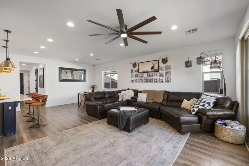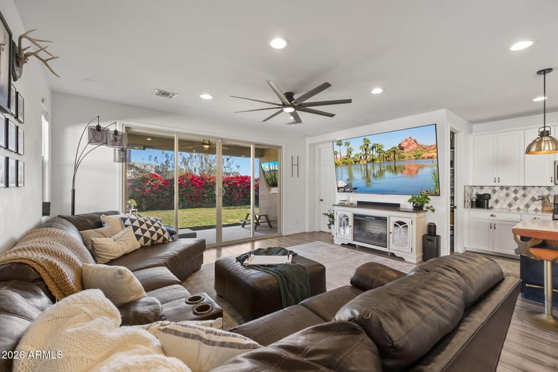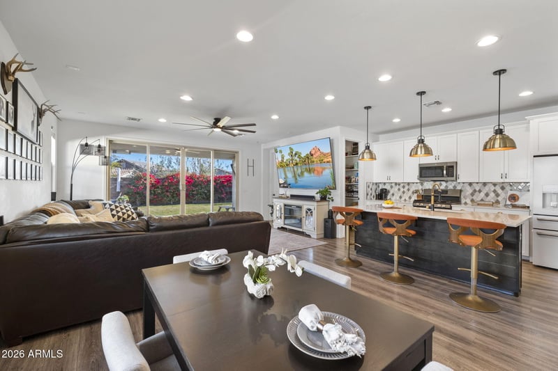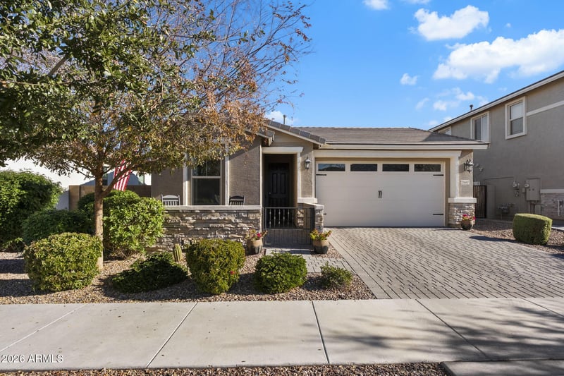 Listing details for 21607 225th Way, Queen Creek, AZ 85142 : ''Future-Ready: 4-Bed Smart Home with Owned Solar & Whole-Home Battery. Welcome to a truly rare, future-ready home where energy independence meets modern luxury oasis. This single-story, just shy of 2000 ft.². Features a fully owned solar system paired with a SunVault whole-home battery, designed to keep your lights, appliances, and even the A/C running during power outages. Enjoy significant utility bill savings and peace of mind with this premium energy setup, a major selling point in 2026. Inside, the heart of the home is a chef's dream quartz kitchen, boasting a statement island, upgraded finishes, and a walk-in pantry complete with a power outlet. Seamless indoor/outdoor living is a breeze with dual sliders that create an approx. 6-ft opening to the covered Patio.