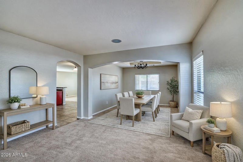 Listing details for 21619 Durango St, Buckeye, AZ 85326 : MOTIVATED SELLER will entertain all offers. Come see this beautiful 4-bedroom, 2.5-bath home located in the desirable Sundance subdivision. Formerly the builder's model, this home showcases numerous upgrades and thoughtful features throughout, including a built-in surround sound system, security system, oversized laundry room, and an extended-length garage. Step inside to find brand new carpet and fresh interior paint, creating a clean and move-in ready feel. The open-concept kitchen offers abundant counter space and cabinetry, and flows seamlessly into the great room--perfect for entertaining and staying connected with family and guests. A convenient powder room is located downstairs for visitors. Upstairs, you'll find a generous loft space ideal for a home office, study area, or game Room. The spacious primary suite features a private sitting area and is thoughtfully split from the other bedrooms for added privacy. The ensuite bathroom includes dual sinks, a walk-in shower, and two closets. Three additional well-sized bedrooms share a full hall bathroom with dual sinks and a separate tub/shower combination. Enjoy Arizona living in the private backyard, complete with an extended patio--perfect for relaxing or entertaining. The extended 2-car garage provides ample space for larger vehicles and additional storage. This exceptional home combines comfort, functionality, and style--truly a must-see!