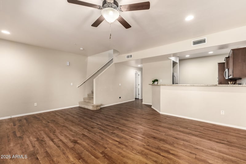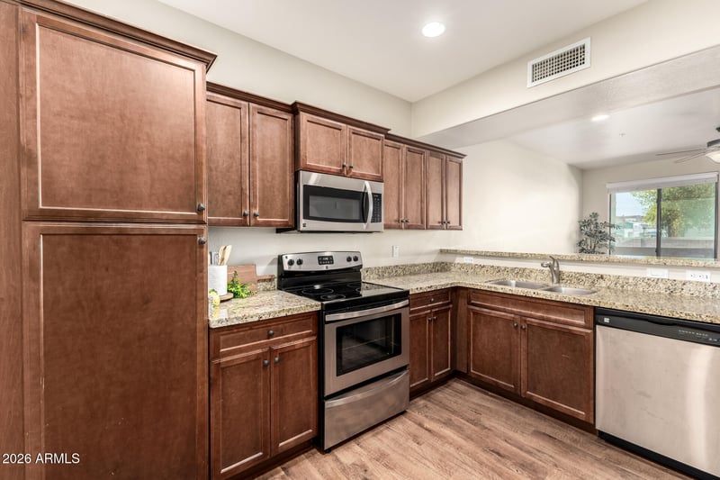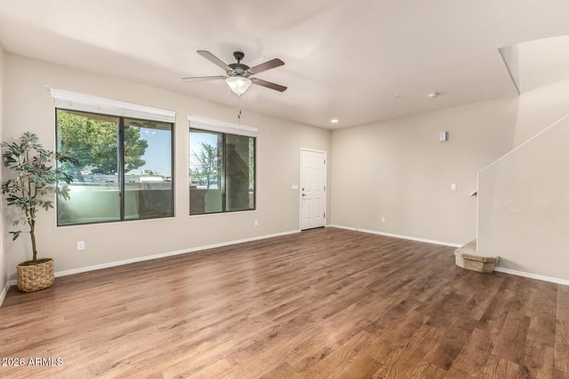 Listing details for 21655 36th Ave #103, Glendale, AZ 85308 : Beautiful 3 bed, 2.5 bath townhome in Portales featuring stone accents, a cozy front patio, and a 2-car rear-entry garage. This move-in ready home offers a spacious living and dining area with wood-look flooring and a neutral palette throughout. The kitchen includes granite countertops, stainless steel appliances, ample cabinetry, and a pantry. The primary suite features private balcony access and an ensuite with dual sinks. Enjoy access to a community pool and a convenient location near shopping, dining, and everyday amenities. HOA includes water, sewer, and trash, helping reduce monthly utility expenses. This one won't last!
