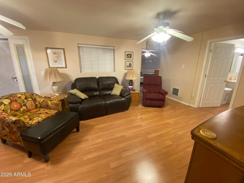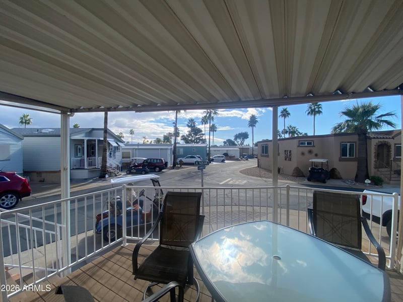 Listing details for 2197 Taos Ave #197, Apache Junction, AZ 85119 : You own and land and this spacious 1000+ square foot 1990 park model with upgrades and an Arizona room addition! 2-bedroom 2 bathrooms on a large corner lot with plenty of room to park multiple vehicles! Raised front deck perfect for entertaining and watching the sun come up over a cup of coffee, this is the perfect winter retreat in a golf course resort with endless amenities including an on-site restaurant, multiple pools/spas including a therapy pool. Newer AC/heat unit, cement siding, large shed and back patio. Inside laundry and an open floor plan.