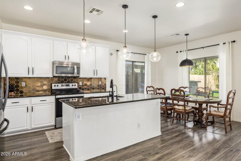 Listing details for 21970 Tonto St, Buckeye, AZ 85326 : Beautifully renovated within the last 4 years! This light, bright, and spacious 5-bed, 3-bath residence is perfect for expansive living. Features include new paint and flooring, granite counters and custom backsplashes in the kitchen and all bathrooms, freshly painted cabinetry, modern lighting, and updated hardware. Backyard is an entertainer's dream with custom turf, a putting green, sparkling pool with heat-reduction deck coating, and outdoor Bluetooth speaker system. Major improvements include two new AC units (upstairs and down) and a new pool heater. The front yard offers custom landscaping, and the 3-car garage features a wall of built-in cabinets, exercise mirrors and a work bench. Located near multiple parks in the peaceful Windmill Village neighborhood. ASSUMABLE 4.375% VA loan.