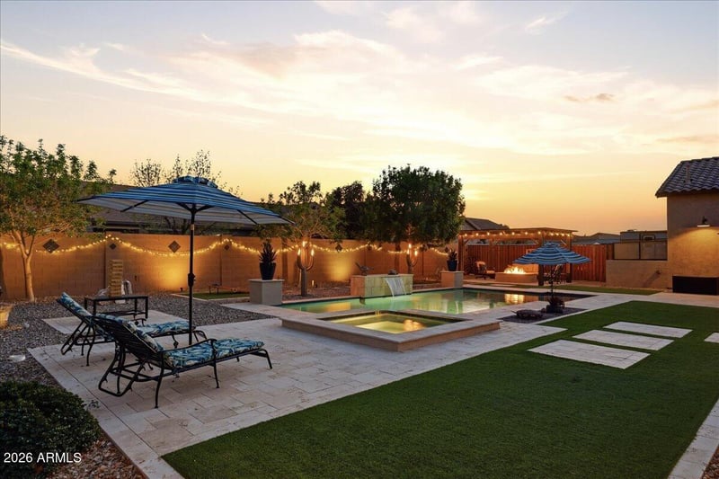 Listing details for 21995 Duncan Ct, Queen Creek, AZ 85142 : Set on nearly half an acre in a quiet setting, this impressive single-level home offers space, comfort, and standout amenities. The property features a rare 4-car garage plus RV parking, providing plenty of room for vehicles, storage, or recreational toys. Inside, the thoughtfully designed layout includes dual primary suites, ideal for multigenerational living, guests, or a private retreat. Open living areas create an inviting flow that's perfect for everyday living and entertaining. Step outside to your private backyard escape featuring a heated pool and spa, perfect for relaxing or hosting gatherings year-round. With expansive yard space and a desirable layout, this home combines flexibility, outdoor living, and room to grow--a rare opportunity for those seeking both comfort and function