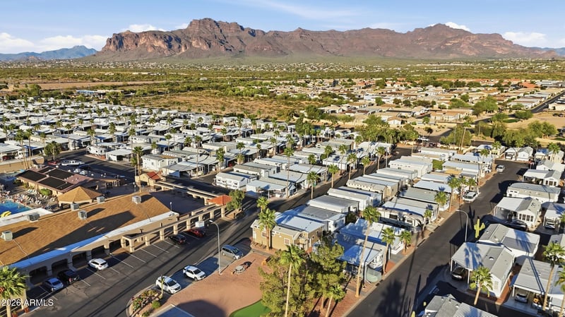 Listing details for 220 Motherlode Dr, Apache Junction, AZ 85119 : Rare corner lot location in Golden Vista's gated land owned 55+ resort community that boast views of the Superstition Mountains from your spacious covered patio. This 2 bed 2 bath home features a large family room, stack washer/dryer, Murphy bed/office area with updated AC and appliances, R/O system and more. Outside, an epoxy driveway, features (5) 6ft bins that slide underneath for ample added storage, a workshop/storage space located in back. Across is the clubhouse and heartbeat of the community, featuring offices, workshops, billiard and card rooms, pools and more. This community is located off US60 and Goldfield Rd, a short distance from major shopping and restaurant areas.